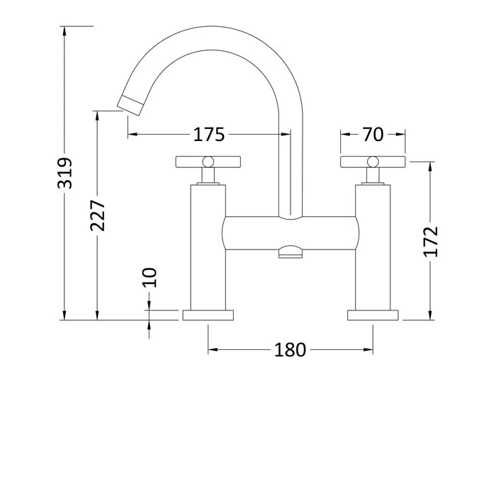 Timeless symmetry with crosshead . Swivel spout. Ceramic disc technology for long life and smooth operation. High quality brass internals with luxury chrome finish. WRAS approved. Height: 319 mm Weight: 3.1 kg Width: 230 mm Depth: 50 mm Material: Brass Waste: No Mount Type: Deck Handle Type: Crosshead Minimum Operating Pressure (Bar): 0.2 Bar Valve/Cartirdge Type: 1/4 Turn Ceramic Disc WRAS Approved: Yes WRAS Approval Number: 2204060 TMV2 Approved: No TMV3 Approved: No Flow Rate at 0.1 Bar (L/min): 8.0000 Flow Rate at 0.5 Bar (L/min): 29.0000 Flow Rate at 1 Bar (L/min): 40.0000 Flow Rate at 2 Bar (L/min): 48.0000 Tap Holes Required: 2 Tap Spout Projection: 115.0000 mm Pipe Centres: 180 Manufacture Guarantee: 20 Years Guarantee Details: During installation extra care must be taken to avoid damaging the fittings. We provide Manufacture Guarantee against faulty workmanship or materials (excluding serviceable parts), providing they have been installed, cared for and used in accordance with our instructions.