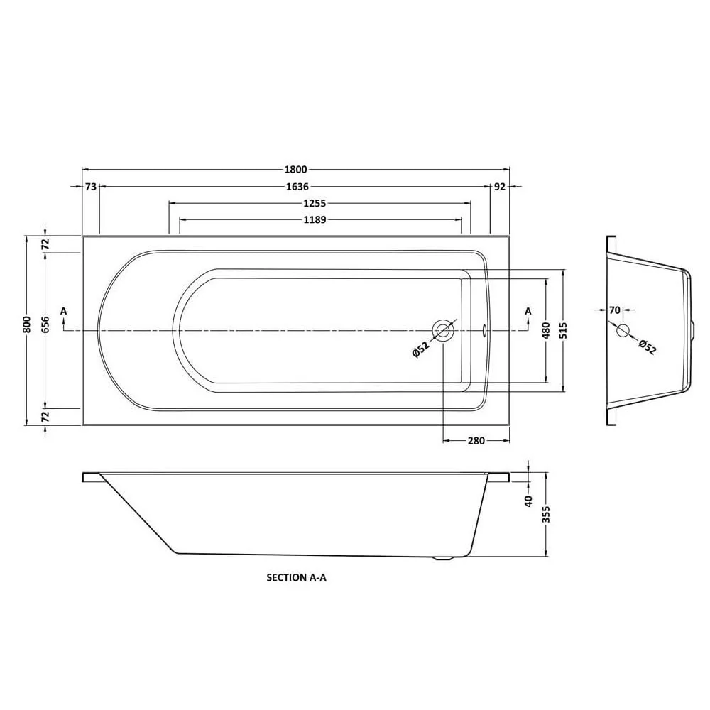 - Bath Internal Length : 1189mm